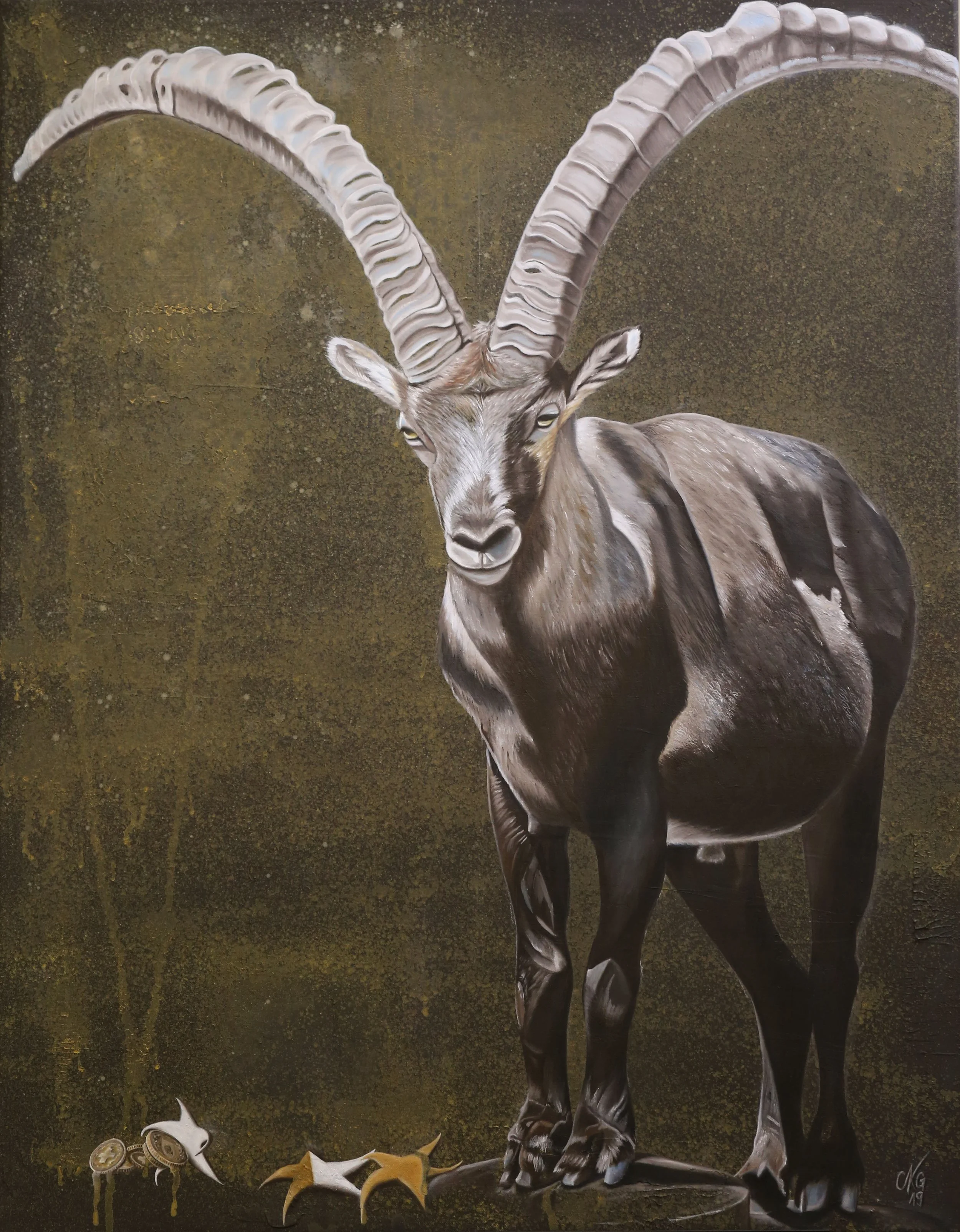 Ein Prachtskerl - jedesmal bin ich hingerissen wenn ich ihn sehe. Der Steinbock ein König der Berge, ein Wappentier wie in Stein gemeisselt. Oder eben in einem prächtigen Gemälde festgehalten.